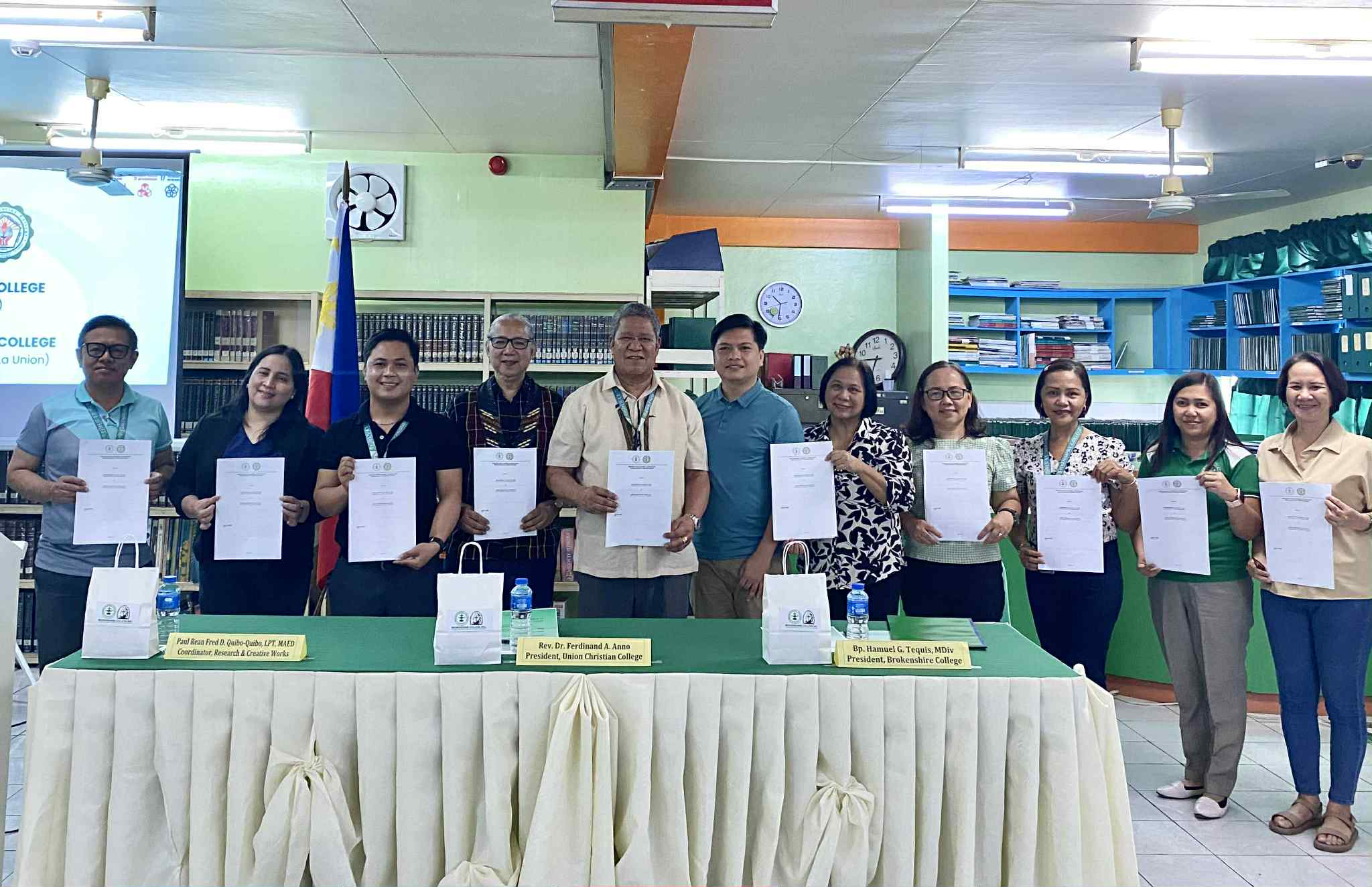 Brokenshire College, Davao City, formally entered into a partnership with Union Christian College (UCC) of San Fernando City, La Union, through a Memorandum of Understanding (MoU) Signing Ceremony held on July 24, 2025, at 10:00 AM in the Periodical Section of the LRMC, 3rd Floor, Emma Noreen Building, Brokenshire College Campus.