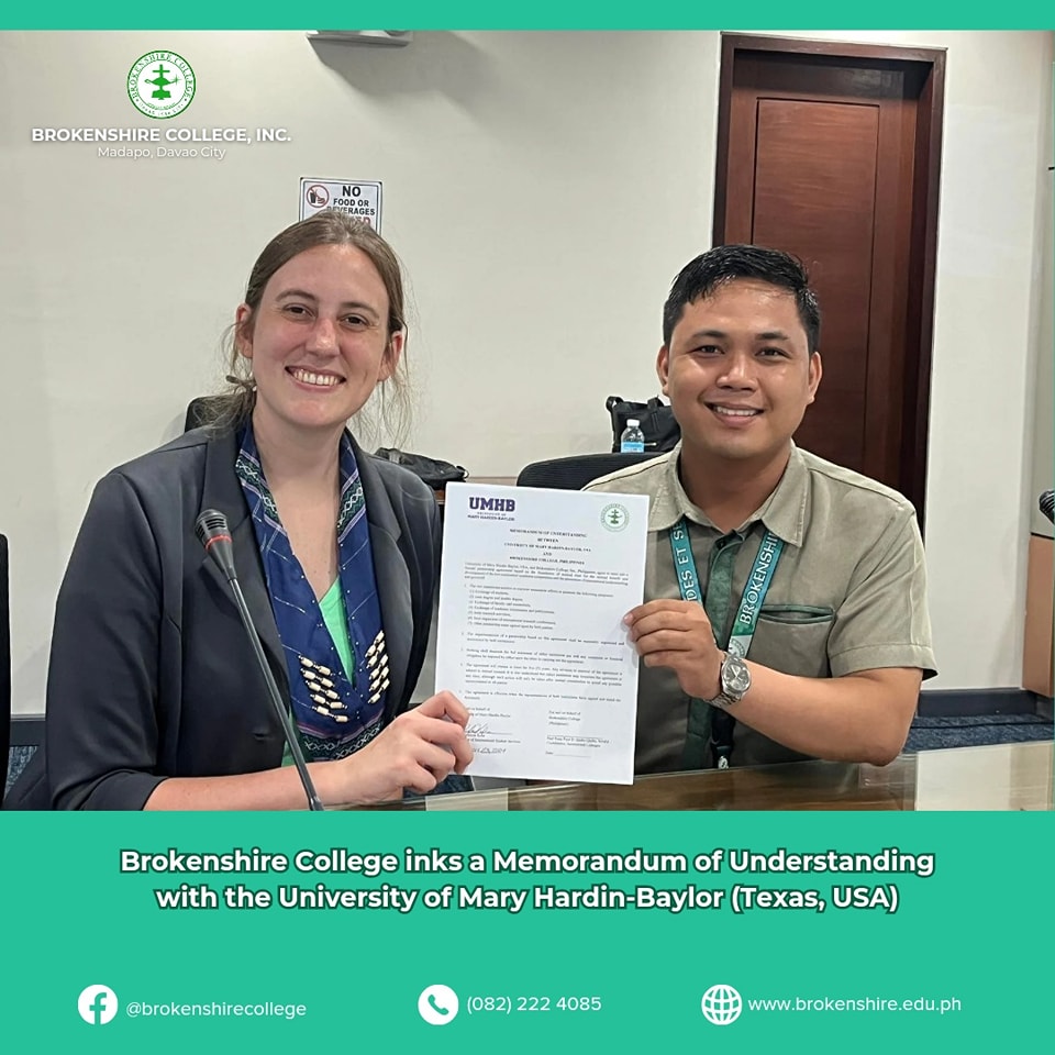 Exciting developments are underway for the Brokenshire College community as the institution takes another significant step toward global academic collaboration. Brokenshire College has officially entered into a partnership agreement with the University of Mary Hardin-Baylor (UMHB) in Texas, United States, marking a milestone in its pursuit of international linkages and academic growth.