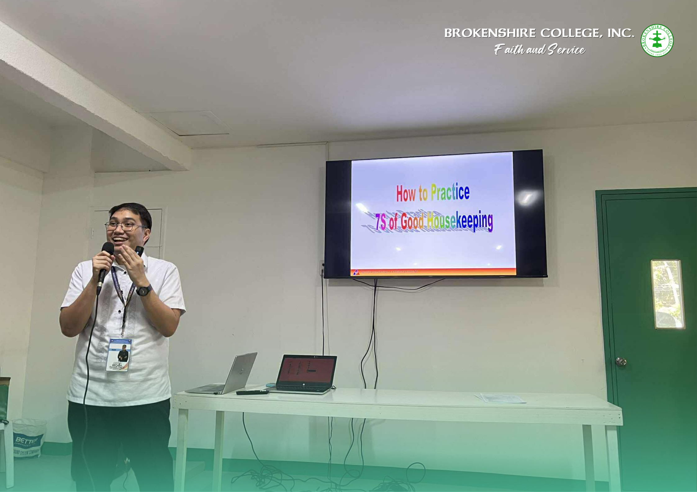 In line with its commitment to maintaining excellence and efficiency in all operations, Brokenshire College conducted a 7S Good Housekeeping Training on October 21, 2025. The activity aimed to reinforce the implementation of the 7S principles across all offices and departments, ensuring the institution’s readiness for the upcoming 7S Audit.