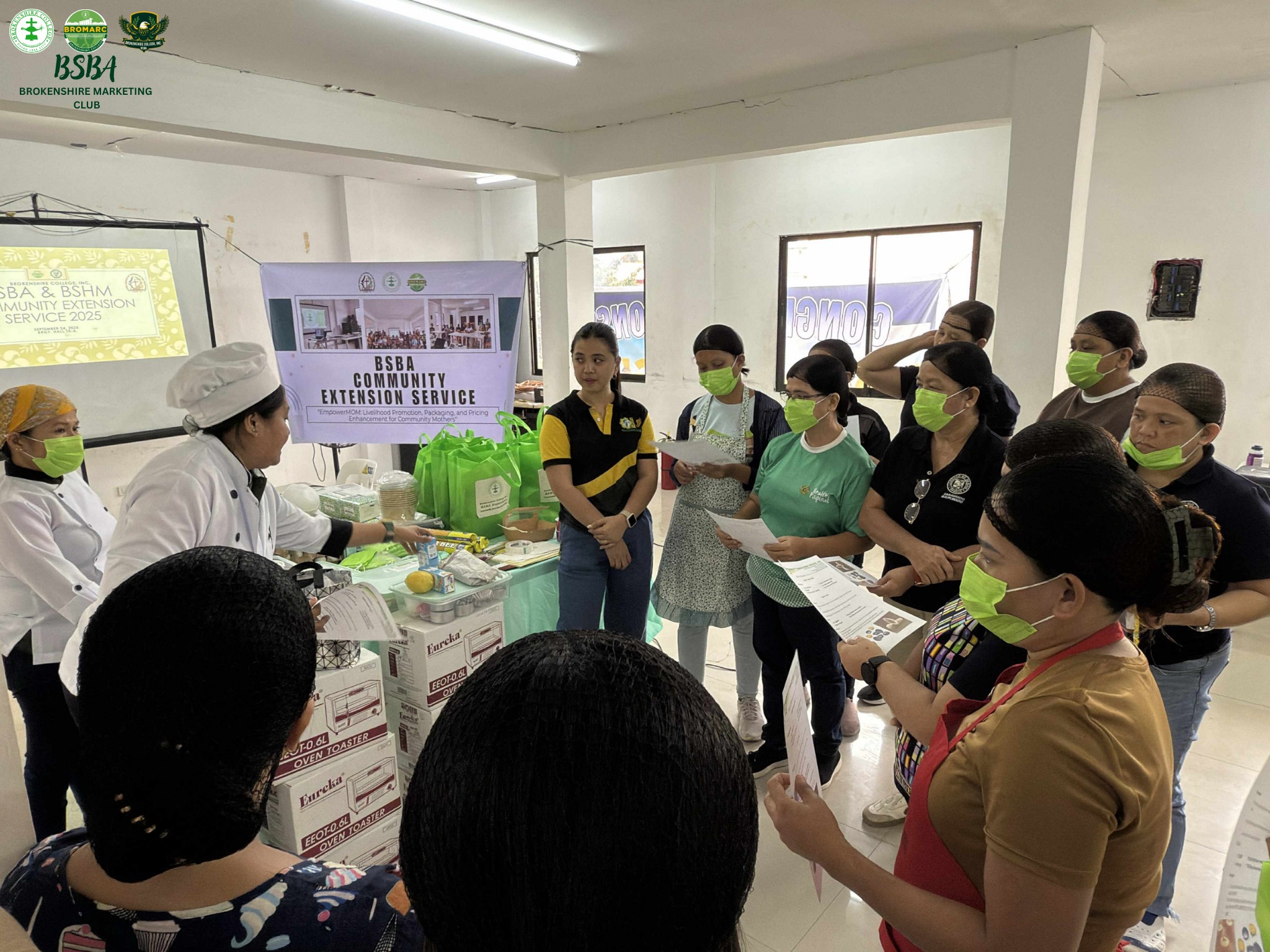The session aimed to empower local mothers by providing them with practical livelihood skills and entrepreneurial knowledge. The BSHM students led a hands-on demonstration on how to prepare banana lemon tarts, while the BSBA students facilitated workshops on product packaging, logo design, and branding strategies. Through this collaboration, participants gained valuable insights into both the creative and business aspects of small-scale entrepreneurship.