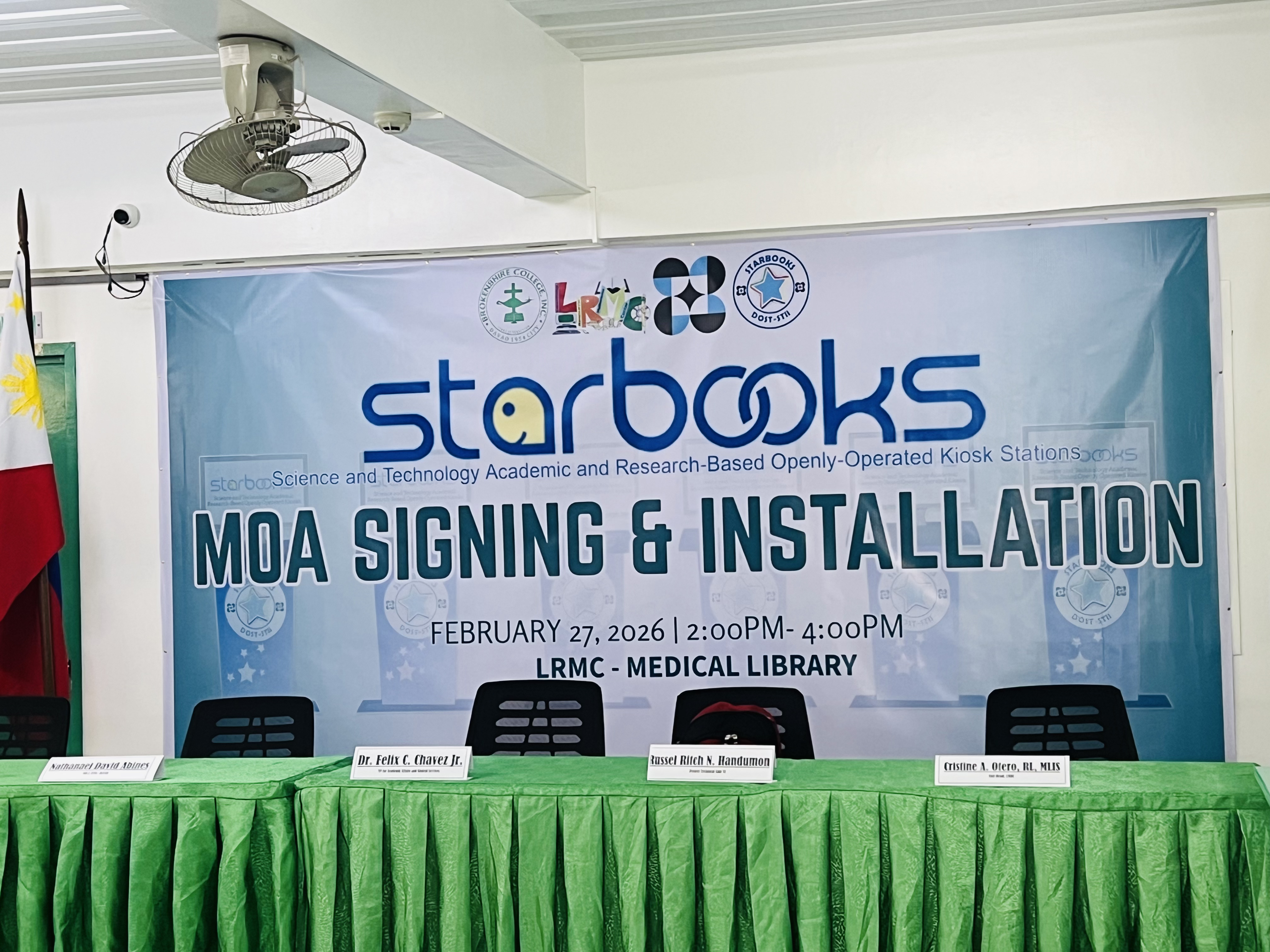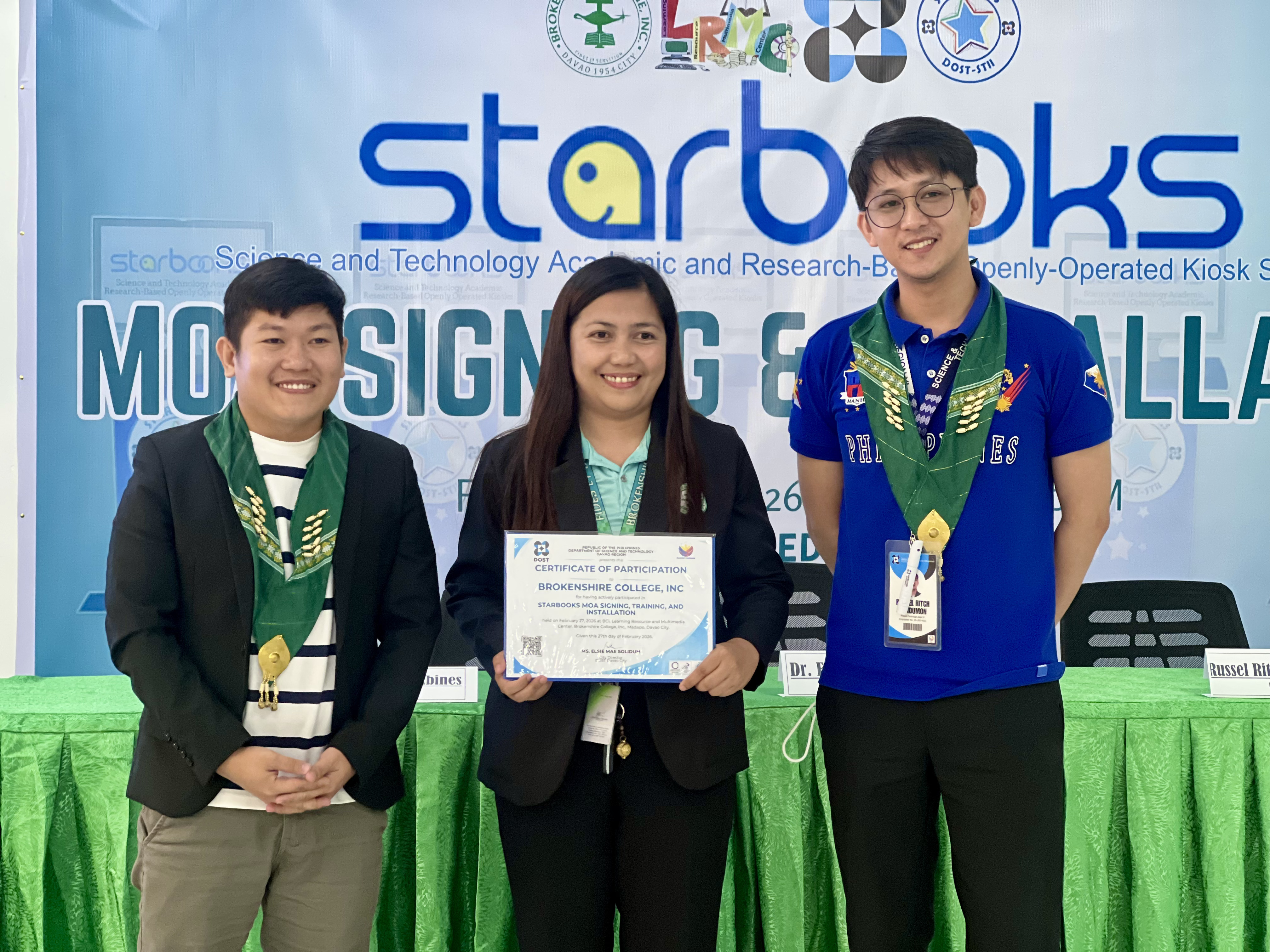 On February 27, 2026, the Learning Resource and Multimedia Center (LRMC) of Brokenshire College, Inc. officially marked a significant institutional milestone through the Memorandum of Agreement (MOA) Signing and Installation of the STARBOOKS (Science and Technology Academic and Research-Based Openly Operated KioskS) in partnership with the Department of Science and Technology (DOST).
