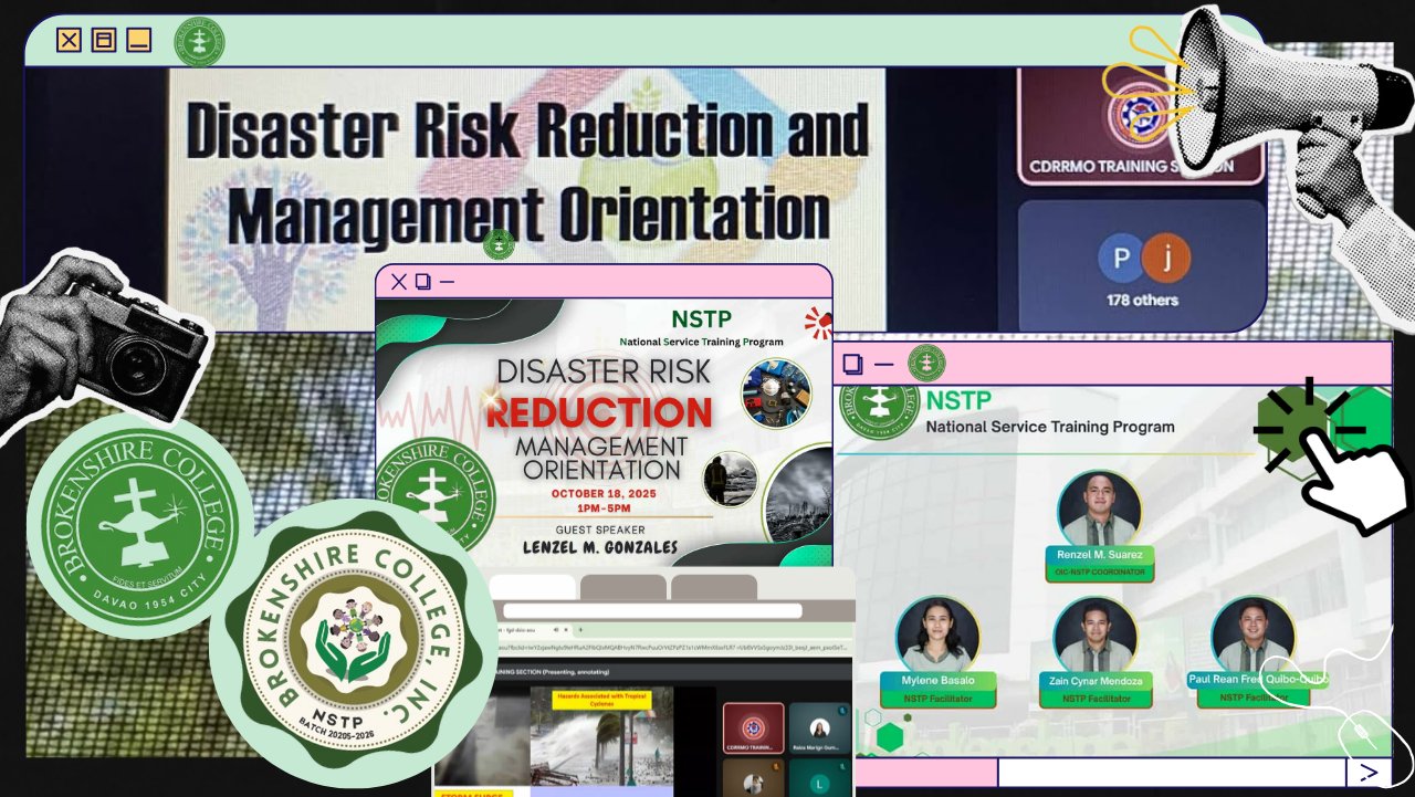 In response to the recent earthquake that struck parts of Mindanao, Brokenshire College Inc.- National Service Training Program (NSTP) students actively participated in an online Disaster Risk Reduction and Management (DRRM) Orientation conducted by the Davao City Disaster Risk Reduction and Management Office (CDRRMO) on October 11, 2025. The activity was held via Google Meet in compliance with a memorandum from the city and the school administration to conduct sessions online as a safety measure following the earthquake. The orientation included interactive discussions and practical demonstrations highlighting first aid response, evacuation planning, and community-based disaster preparedness strategies.